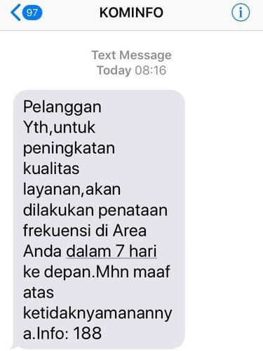 Sebelumnya, beberapa pengguna internet memang menerima pesan singkat blast (sms blast) menginformasikan akan adanya proses penataan frekuensi.