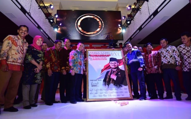 SYL juga diberikan penghargaan dari Forum Humas Sulsel atas pembinaan yang diberikan. Penghargaan dalam bentuk foto pribadi SYL yang berukuran 112 Cm x 150 Cm. Sementara Kabupaten Luwu memberikan cindera mata pin emas pertanian kepada SYL atas kontribusi memajukan pertanian di Sulsel. (*)