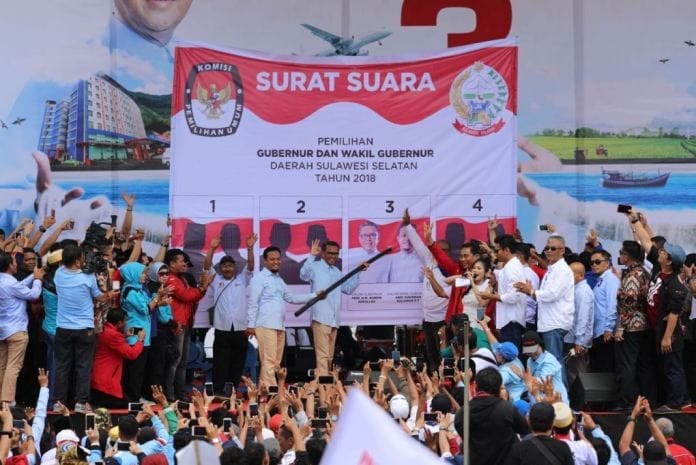 Bone, PANRITA.News – Kampanye Akbar perdana Prof Andalan, Nurdin Abdullah – Andi Sudirman Sulaiman (NA-ASS) di Stadion Pesibo Bone diawali dengan simulasi pencoblosan kertas suara nomor 3. Pencoblosan dilakukan oleh Prof Nurdin Abdullah dan Andi Sudirman Sulaiman.