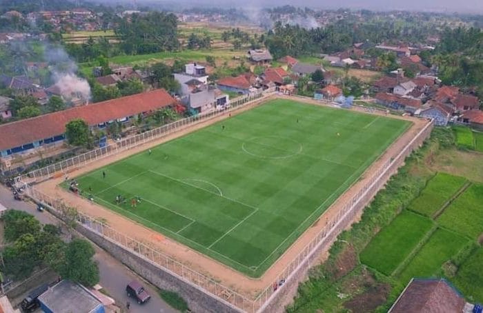 Ciamis, PANRITA.News – Tidak mau kalah dengan lapangan sepak bola yang ada di kota-kota besar, sebuah lapangan modern bertaraf internasional dibangun di sebuah desa di Jawa Barat.
