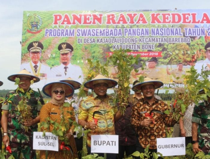 Bone, PANRITA.News – Wakil Gubernur Sulsel, Andi Sudirman Sulaiman, melakukan panen raya kedelai di Desa Kajaoliddong, Kecamatan Barebbo, Kabupaten Bone, Kamis (27/12/2018).