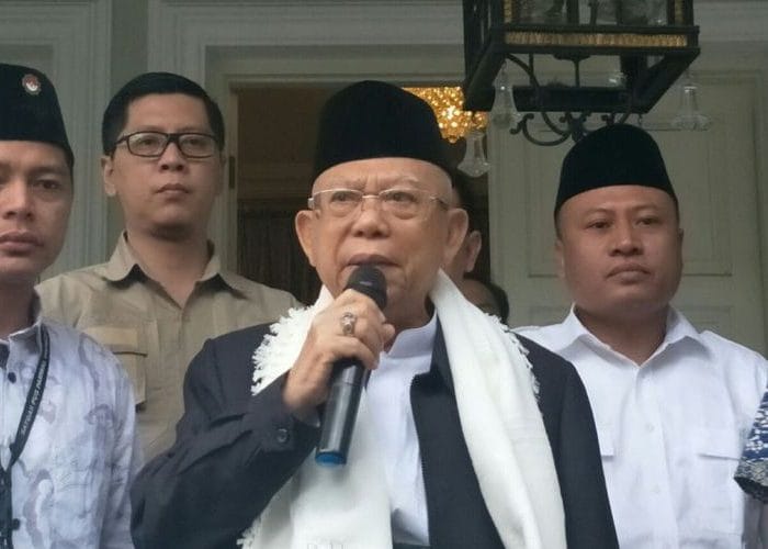 tauan di lokasi, Ma’ruf Amin yang mengenakan baju koko dan sarung warna putih didampingi istrinya Wury Estu Handayani. Ma’ruf Amin sedianya akan memberikan tausyiah kepada peserta acara tersebut.