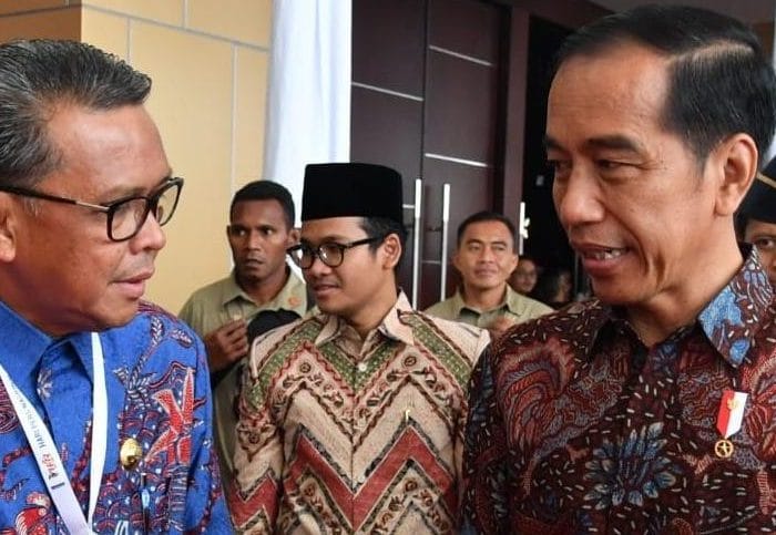 Usai acara, Jokowi menahan Nurdin Abdullah dan mengajak berdiskusi.