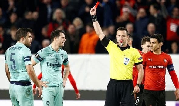 Lag 16 besar ini memaksa Arsenal bermain dengan 10 orang setelah Sokratis Papastathopoulos menerima kartu kuning kedua.