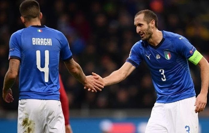 Italy: G Donnarumma; Piccini, Bonucci, Chiellini, Biraghi (Spinazzola 91); Verratti (Zaniolo 85), Jorginho, Barella; Bernardeschi, Immobile (Quagliarella 79), Kean