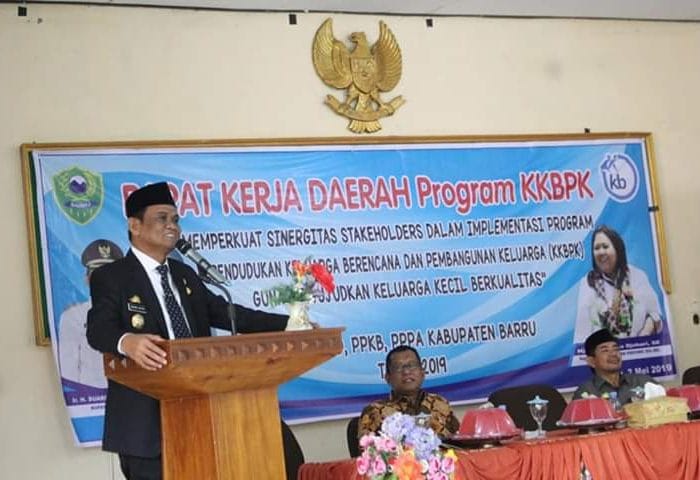 Barru, PANRITA.News – Bupati Barru Ir. H. Suardi Saleh, membuka secara resmi Rapat Kerja Daerah (Rakerda) Program Kependudukan Keluarga Berencana dan Pembangunan Keluarga (KKBPK) yang berlangsung di Aula Kantor DPMD Kabupaten Barru, Kamis (2/5/2019).