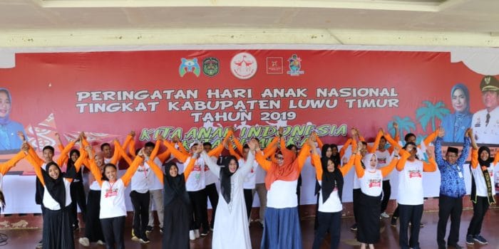 Peringatan Hari Anak Nasional ini diikuti oleh ratusan anak dari berbagai kalangan seperti PAUD, siswa SD dan SMP. Hadir pula anggota DPRD Luwu Timur, Heriyanti Harun dan Tugiat, serta sejumlah kepala OPD lingkup Pemkab Luwu Timur.