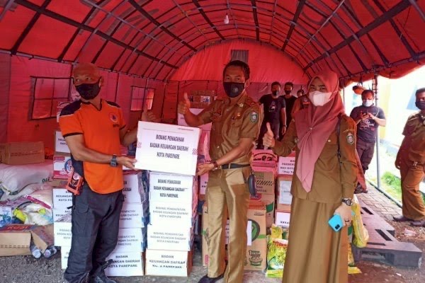 Parepare, PANRITA.News – Badan Keuangan Daerah (BKD) Kota Parepare menyerahkan bantuan ke posko bantuan Pemkot Parepare di Jalan Ahmad Yani, eks kantor BPBD, Senin, (18/1/2021).