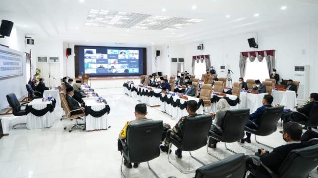 Hanya tampak Unsur Forum Pimpinan Daerah dan beberapa Undangan, Sementara Kepala dinas dan OPD, mengikuti paripurna itu dengan cara virtual.