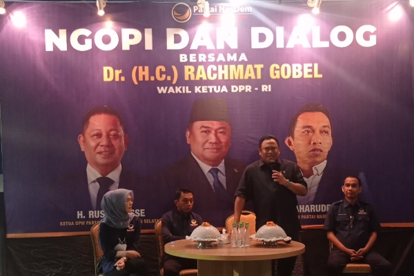 Makassar, PANRITA.News – Pengurus Dewan Pimpinan Wilayah (DPW) Partai Nasional Demokrat (NASDEM) Sulawesi Selatan (Sulsel) menggelar Ngopi dan dialog bersama Wakil Ketua DPR RI Fraksi Nasdem, Rachmat Gobel di sekretariat DPW Nasdem Sulsel, Makassar (21/7/2022).