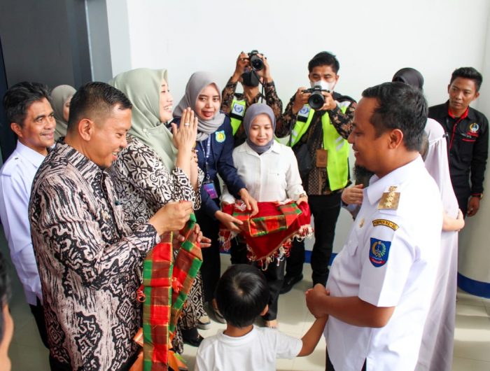 Bupati Kepulauan Selayar H. Muh. Basli Ali menyambut orang nomor satu di Sulsel ini dengan melakukan pengalungan sarung sutra di Ruang Kedatangan Bandara H. Aroeppala. Berturut-turut Ketua TP PKK Kabupaten Kepulauan Selayar Hj. Andi Dwiyanti Musrifah Basli juga melakukan pengalungan sarung sutra kepada Ketua TP. PKK Sulsel.