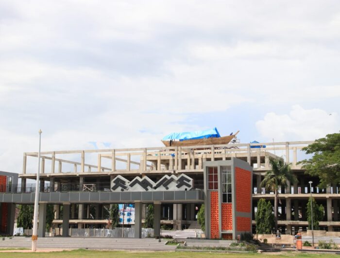 Kini body kapal Pinisi itu mulai nampak di atas gedung yang memiliki tinggi 16 meter. Tentu semakin indah kelihatan jika tiang dan layar Pinisinya sudah selesai.(*)