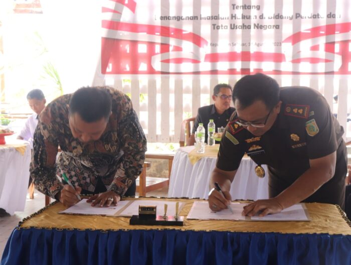 Selayar, PANRITA.News – Pemerintah Kabupaten Kepulauan Selayar bersama Kejaksaan Negeri (Kejari) setempat menandatangani Perjanjian Kesepakatan Bersama atau Memorandum of Understanding (MoU) tentang Penanganan Masalah Hukum Bidang Perdata Dan Tata Usaha Negara di wilayah hukum Kabupaten Kepulauan Selayar.