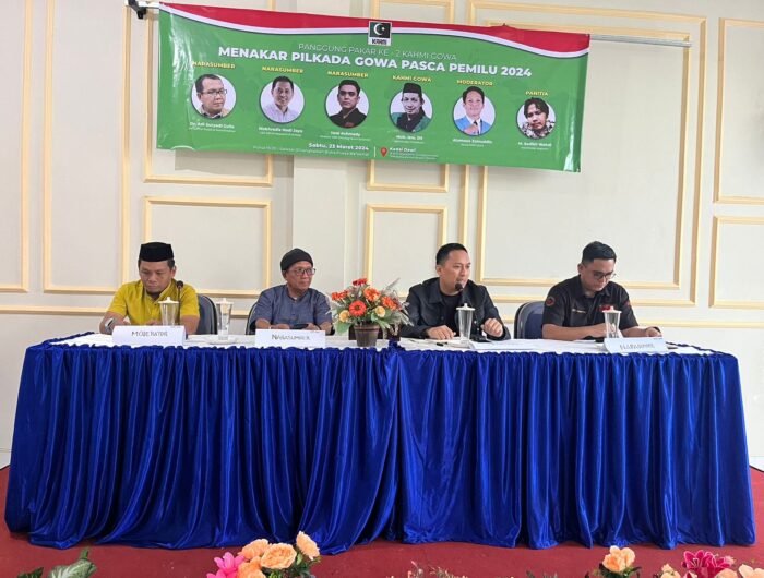 Gowa, PANRITA.News – Majelis Daerah (MD) KAHMI Gowa kembali melakukan dialog publik bertajuk Paggung Pakar ke-2 dengan tema “Menakar Pilkada Gowa Pasca Pemilu 2024” Sabtu, (23/04/2024) di Kedai Dewi Jl. K.H. Agussalim, Sungguminasa.