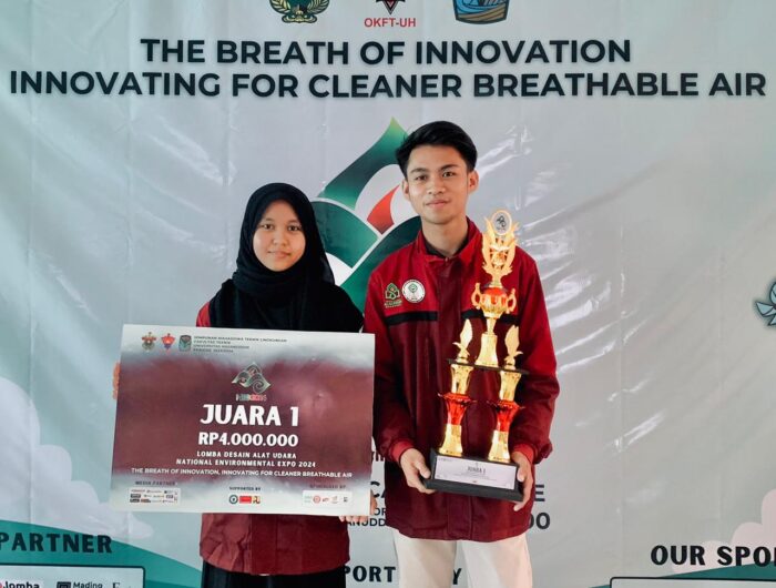 UIN Alauddin, PANRITA.News – Tri Gunawan Musa dan Desi Puspitasari mahasiswa dari Unit Kegiatan Mahasiswa (UKM) Riset Keilmuan dan Kemitraan Masyarakat (Ritma) berhasil menjadi juara pertama dalam lomba desain alat filter udara nasional dari National Environmental Expo (NEO) Fakultas Teknik (FT) Universitas Hasanuddin (Unhas) beberapa waktu lalu.