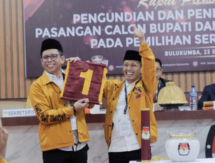 Bulukumba, PANRITA.News – Pasangan calon Bupati dan Wakil Bupati Bulukumba Jamaluddin M Syamsir (JMS) dan Tomy Satria Yulianto (TSY) dengan tagline JADIMI Bulukumba untuk Rakyat mendapat nomor urut satu (1).